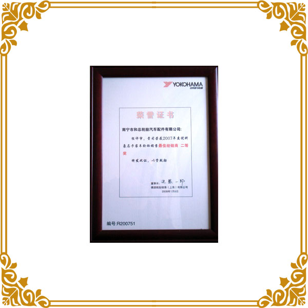 2007年度橫濱卡客車最佳經(jīng)銷商二等獎(jiǎng)
